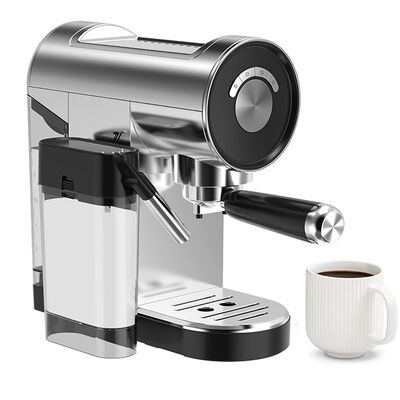 Poznaj półautomatyczny ekspres do kawy 20 Bar – bestsellerowy ekspres do espresso przeznaczony do użytku domowego, z zintegrowanym zbiornikiem na mleko do kremowych cappuccino i latte. Ten półautomatyczny ekspres do espresso posiada ciśnienie pompy 20 bar, moc 1350W i panel sterowania dotykowego dla precyzyjnego parzenia. Konstrukcja z PP/stali nierdzewnej z odłączanym, przezroczystym zbiornikiem na wodę o pojemności 0,9 l, zbiornikiem na mleko i regulowaną tacką ociekową zapewnia łatwe czyszczenie i konserwację. Zawiera płytę do podgrzewania filiżanek ze stali nierdzewnej, filtry na 1 i 2 filiżanki do kawy mielonej, programowalne ustawienia, kontrolę temperatury, system gorącej wody i funkcję samooczyszczania. Chroniony przez urządzenia zabezpieczające przed przegrzaniem i nadmiernym ciśnieniem.