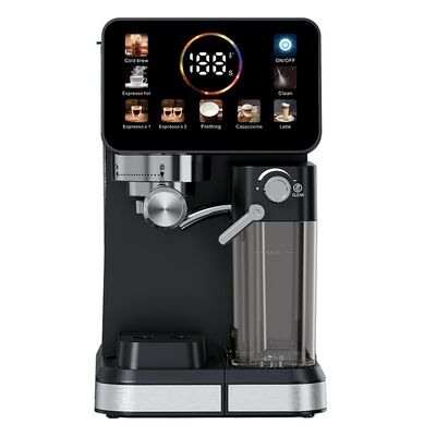 Experience the perfect balance of control and convenience with this semi-automatic coffee machine featuring 20 Bar pressure for rich, full-flavored espresso. The 1350W power delivers fast heating, while the 1.6L water tank allows multiple cups without frequent refilling. With cold brew and cool milk capabilities, you can enjoy refreshing iced coffee drinks alongside traditional espresso, cappuccino, and latte. The digital touch screen display makes operation intuitive, while the built-in adjustable grinder ensures freshly ground beans. Automatic milk frothing with milk tank creates creamy foam for specialty drinks.